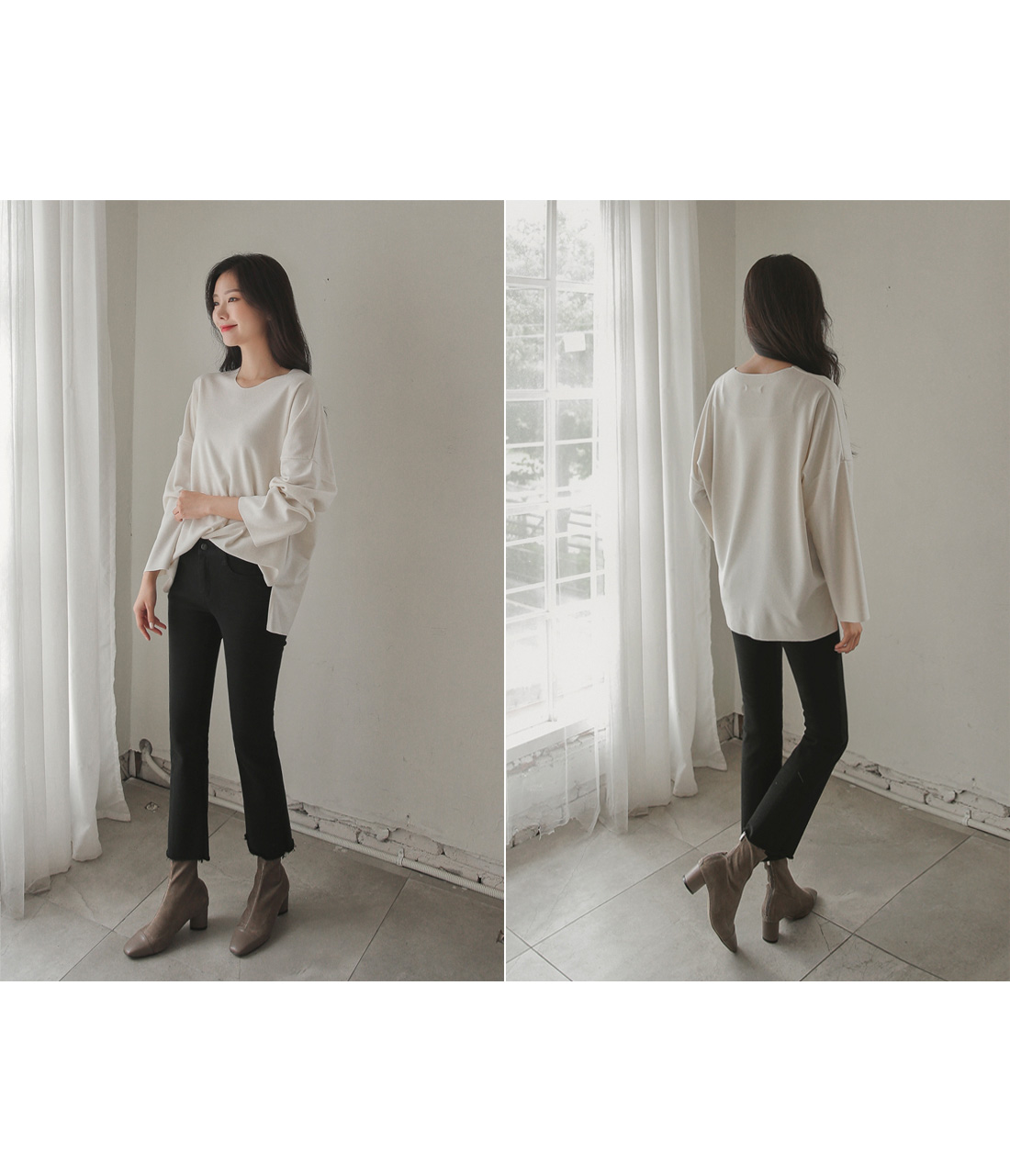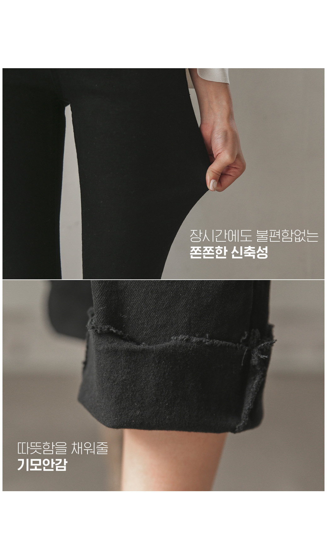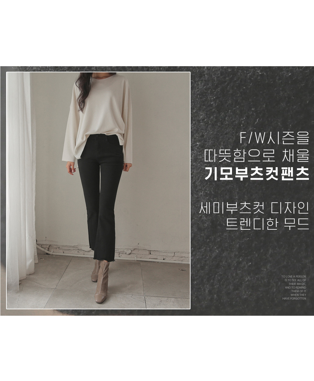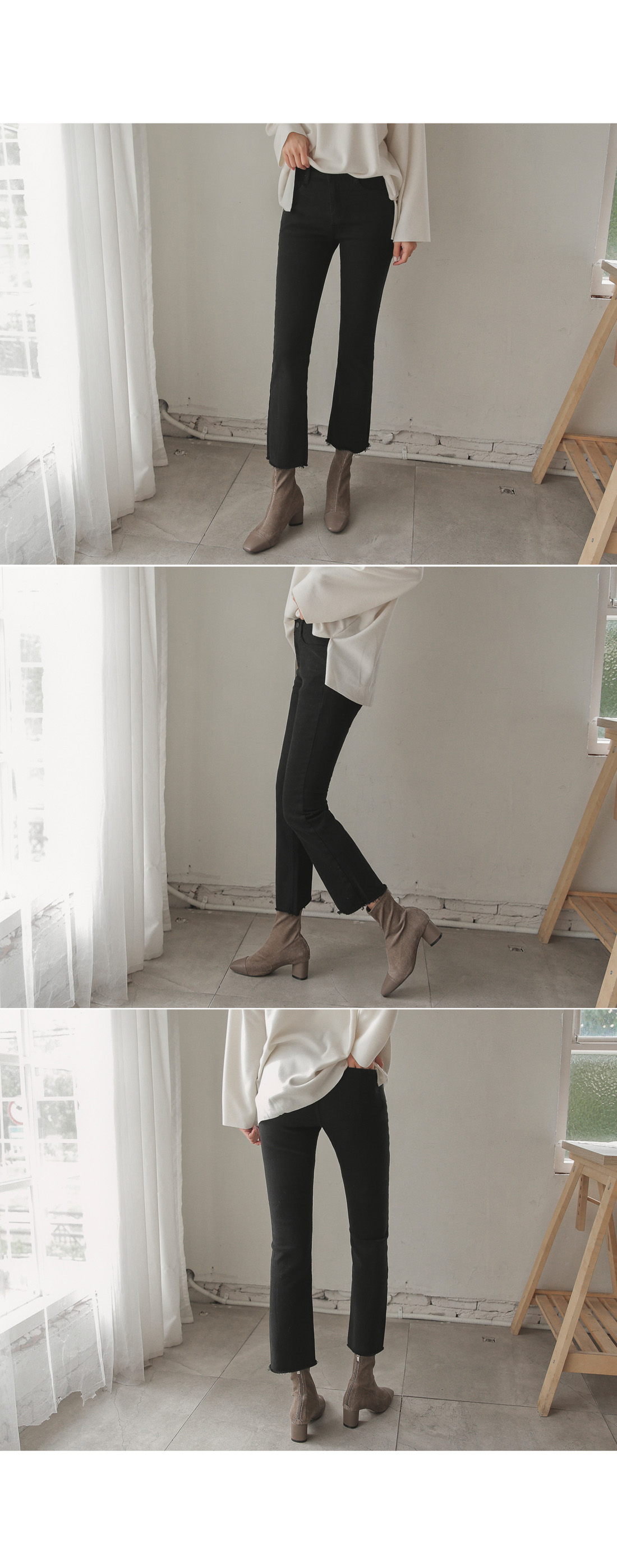세미부츠컷 디자인으로 트렌디한 무드로 입기 좋구요