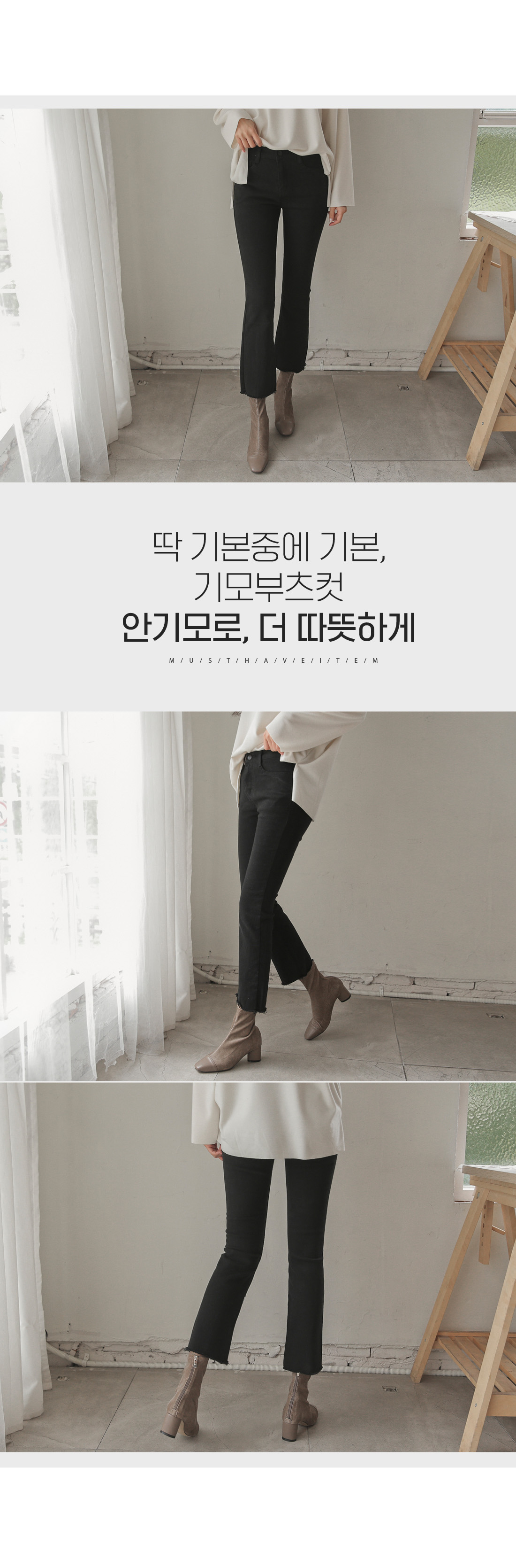 베이직한 디자인의 기모부츠컷팬츠!