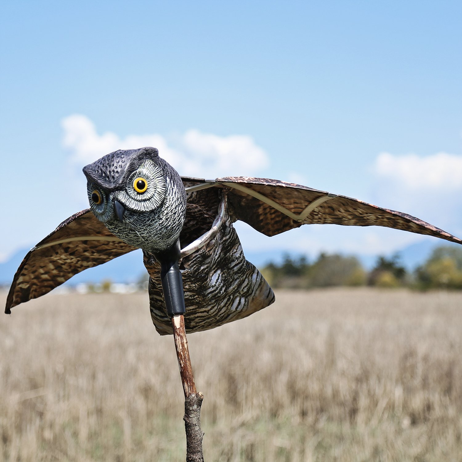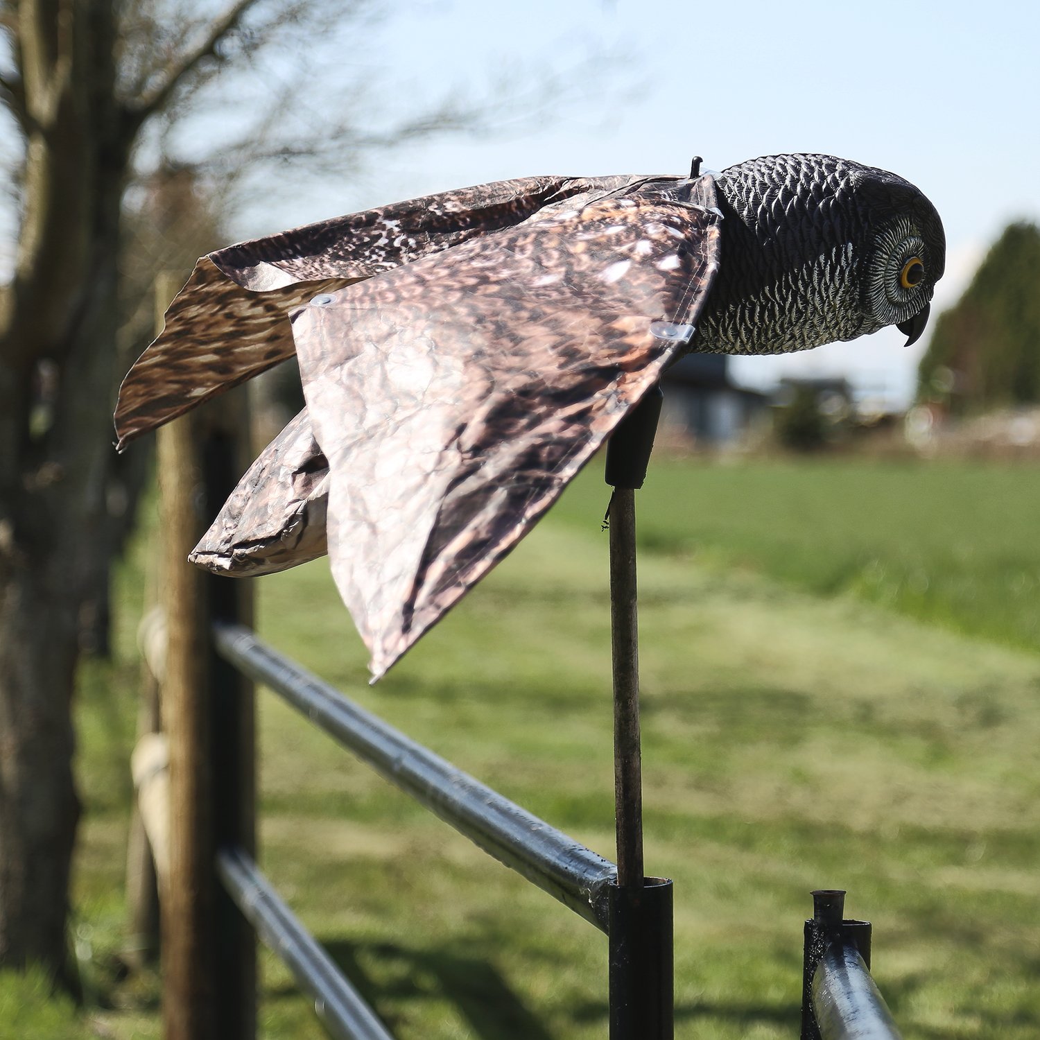 VisualScare Birds' owl owl / moving wing is a bird's eye candy to drive away birds, squirrels, skunk etc from the garden, field.