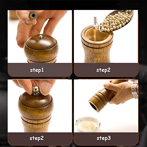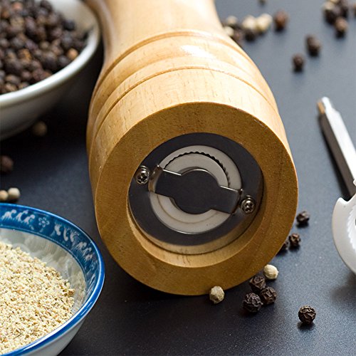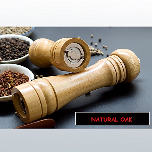 Pepper Grinder,8 Inch Pepper Mill,Salt And Pepper Shakers,Solid Wood With Adjustable Ceramic Coarseness Grinder
