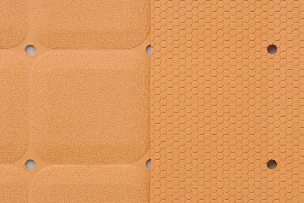 It is a flat type without suction cups, and the hexagonal groove shape shows the slip prevention effect.