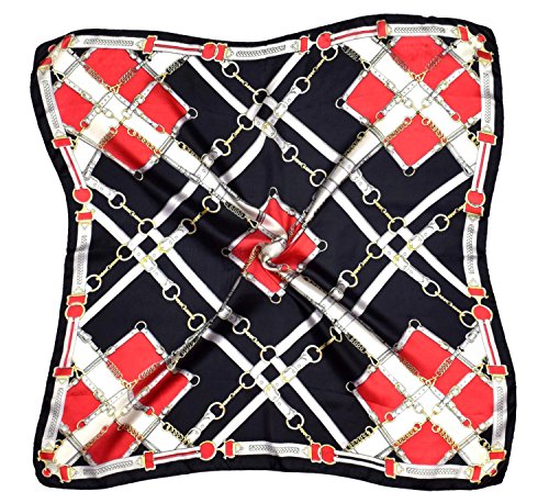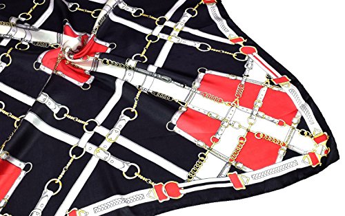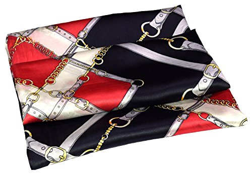 (Bees Knees Fashion)/Accessories/Cold Weather Accessories/DIRECT FROM USA/Red Black Buckle Print Silk Square Scarf