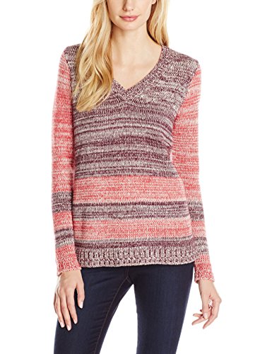 Cotton and cashmere-blended marled V-neck sweater with contrast stripe detailing