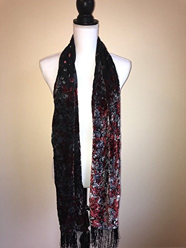 (INC International Concepts)/Accessories/Cold Weather Accessories/DIRECT FROM USA/INC International Concepts Ombre Velvet Floral Scarf Black Red