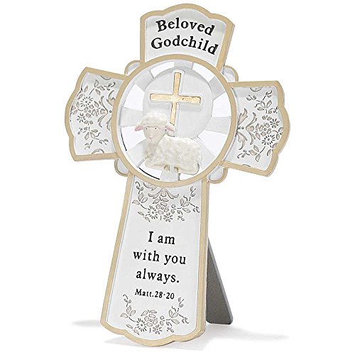 Dicksons Resin Tabletop Wall Cross, Beloved Godchild/White