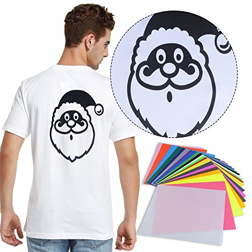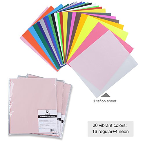 Otrekia 12x10" Heat Transfer Vinyl Sheets (20-Pack) - Assorted Colors Great for DIY Projects - Convenient, Flexible and Easy to Use - Compatible with Iron on Vinyl Heat Press - 1 Teflon Sheet Included