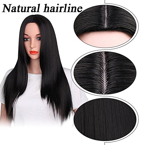 AISI HAIR Synthetic Long Full Wig Straight Black Hair Wigs for Black Women Middle Part Wig Natural Looking Wig Heat Resistant Wig