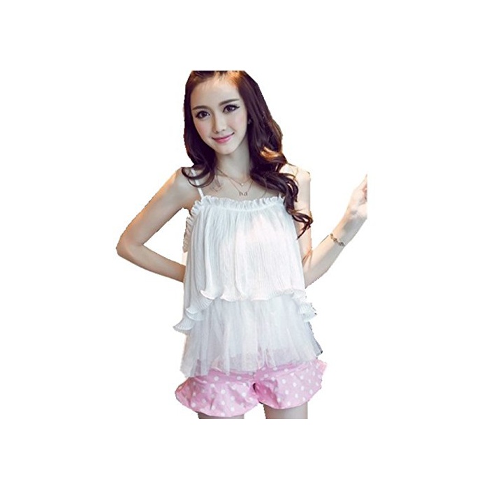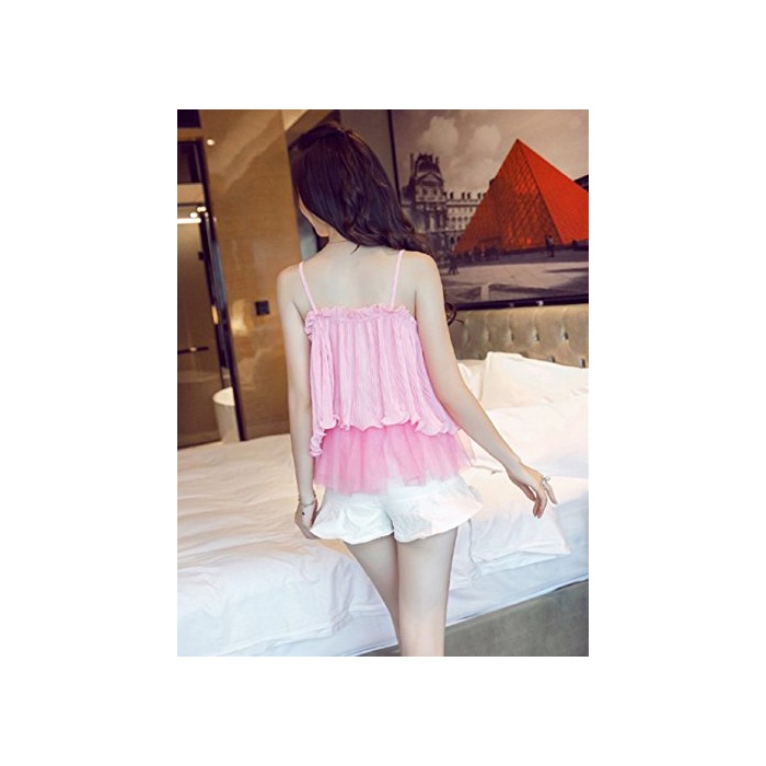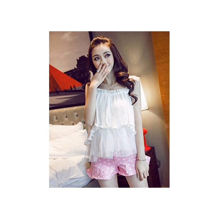 원본상품명: レディス セクシ キャミソル フリル襟 オフショルダ タンクトップ 夏 カジュアル ホルタネック ノスリブシャツ シフォンシャツ トップス 薄手 ピンク ブラウス