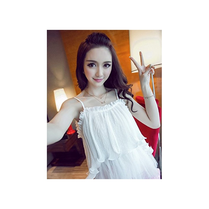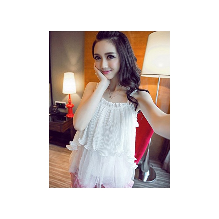 Modern 섹시 캐미숄 프릴금 offshore《루다》 탱크 탑 여름 캐주얼 홀터넥 노슬리브 셔츠 시폰 셔츠 톱스 박수 【 레이디스 프리 사이즈 흰색 화이트 블라우스 】