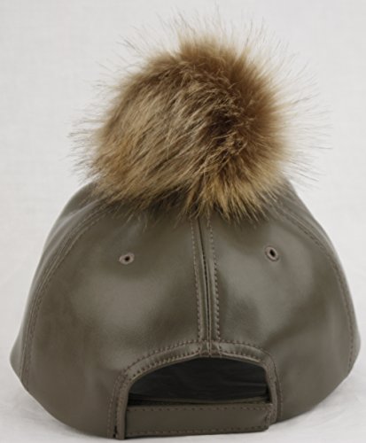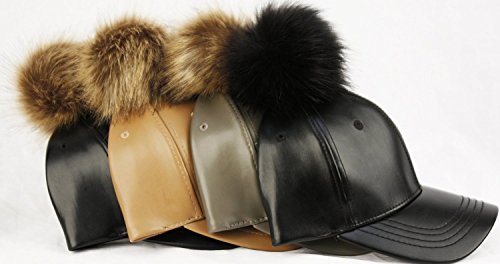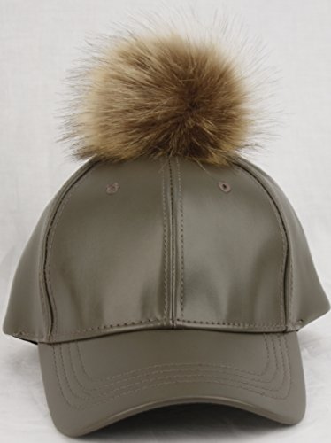 Product DescriptionFaux leather baseball cap with faux-fur pom pom and strap back ,0
