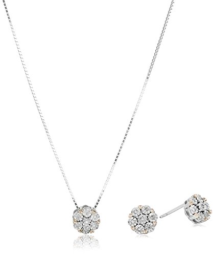 -. Title : Sterling Silver Diamond Cluster Earrings and Pendant Necklace Jewelry Set (1/10 cttw, I-J Color, I2-I3 Clarity)