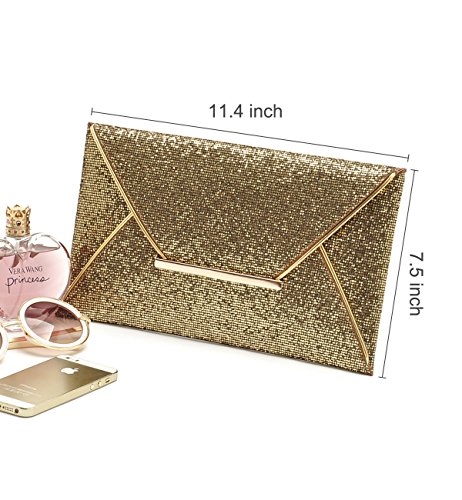 -. Feature : Design: stylish envelope shape. Elegant and classic look. / Capacity: roomy enough to keep your iPhone 7/8 , car keys, credit cards, etc. Two open slot internal pockets for smart phone and purse. / Dimensions: 11.4 inch (Length) * 7.5 inch (Width) / Material: premium pu leather Durable enough to carry for years. / Perfect for cocktail party, wedding, prom, banquet and other occasions. A good gift for your beloved one.