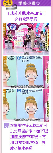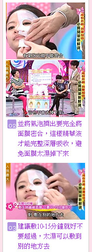 使用方法:潔膚後取出面膜,將上下兩片面膜分別敷於臉部,靜待15-20分鐘後取下輕拍直至吸收即可。