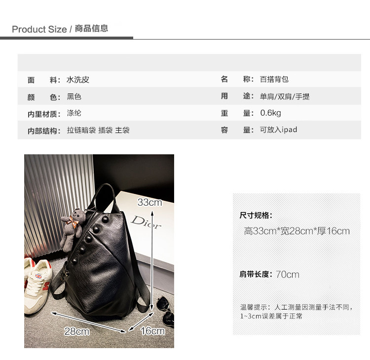 • 内部结构: 拉链暗袋 手机袋 证件袋 夹层拉链袋