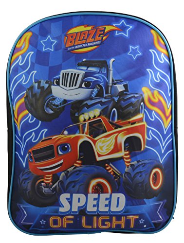 -. Binding : Toy -. Brand : Blaze -. Color : Black/Blue -. Department : boys -. EAN : 0708325410787 -. Feature : Brilliant colors for dazzling lunch time fun. Perfect for school and vacations! Well known characters that your child will love having with them. The perfect all year round! Adjustable padded shoulder straps for additional comfort. / One large zippered compartment for binder, books and folders / Made of an easy to clean and very durable polyester / Go back to school in style with your favorite Blaze And The Monster Machine characters by your side. / Backpack dimensions: 15"H x 11.5"W x 4.5"D -. ProductGroup : Apparel -. ProductTypeName : TOYS_AND_GAMES -. Size : Large -. Title : Nickelodeon Blaze And The Monster Machine 15" School Bag Backpack -. UPC : 708325410787