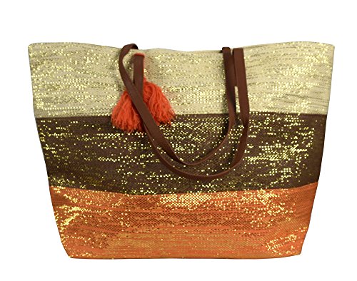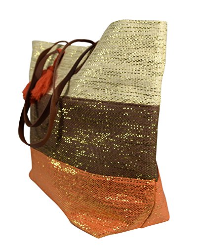 -. Feature : NEW SUMMER COLLECTION by Peach Couture. Peach Couture is a registered trademark. / SHINY TOTE: Dial your style up a notch with this beautiful handbag featuring sequin glitters in gold color all over. / MAGNETIC BUTTON CLOSURE: Easy to manage magnetic button closure so that you dont have to keep opening and closing the zip again and again. / ULTRA SPACIOUS: Is perfect for shopping trips, vacations, carrying laptops, ipads and also for beach essentials. Can easily fit towels, lotions, etc. / STURDY BUILT & LARGE CAPACITY: Designed and built to last. Product Material: 100% Paper. Dimensions: 22" x 14" x 8".