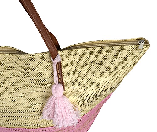 -. Title : Peach Couture Gold Weave Large Travel Tote Hobo Handbags Shoulder Bags