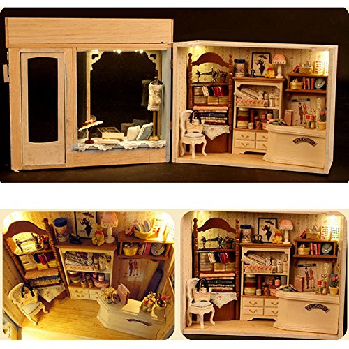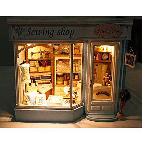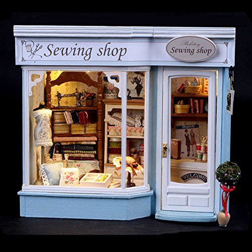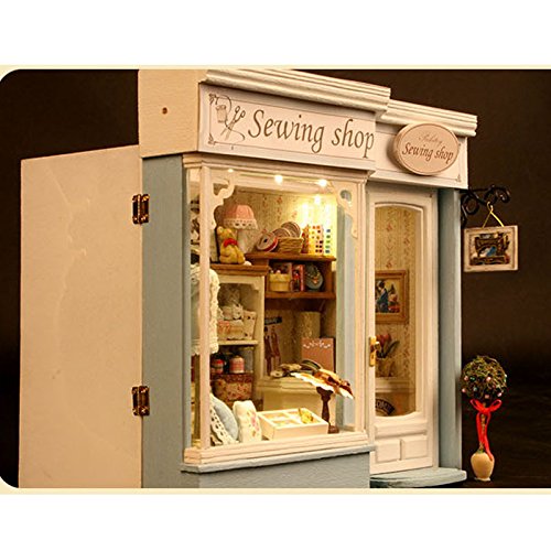 -. Title : WYD Dollhouse Miniature Sewing Shop DIY House Wooden Room With Furniture Kits and Glass Cover for Toy Romantic Artwork Gift