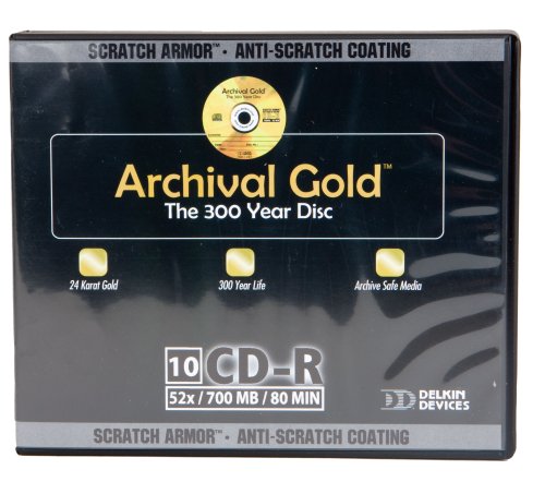 -. Feature : Patented Phthalocyanine dye formula that gives a storage life of 300 years. / Gold is one of the most reflective robust elements on Earth. More than 20 of 24k gold in every CD-R. / Maximum resistance to the harmful effects of oxidation, a main cause of failure to optical media. / Scratch Armor's protective layer prevents scratches, scuffs, dirt, chemicals, and fingerprints