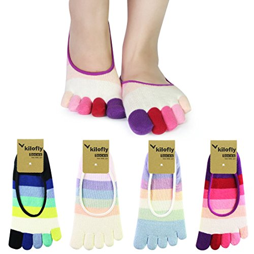 -. Binding : Apparel -. Brand : kilofly -. ClothingSize : One Size -. Color : Multicoloured -. Department : womens -. EAN : 0700580699594 -. Feature : Material: Cotton blend / Includes 4 pairs in different colors as shown in images / Promotes toe strength and flexibility by allowing the independent movement of your toes / Prevents skin-on-skin friction; Protects from corns and blisters / Size: Small / Medium (Women's US shoe size 5 - 9) -. MPN : FTW334set4 -. PartNumber : FTW334set4 -. ProductGroup : Apparel -. ProductTypeName : SOCKSHOSIERY -. Size : One Size -. Title : kilofly Women's No Show Lightweight Striped Toe Socks, Set of 4 Pairs -. UPC : 700580699594