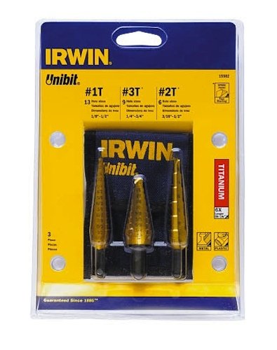 - Title : Irwin Industrial Tools 15502 Unibit 502T Titanium Nitride Coated Step Drill Bit Set with Nylon Pouch, 3-Piece