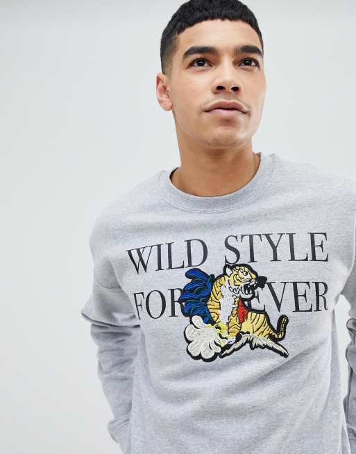 boohooMAN Sweat With Tiger Embroidery In Gray