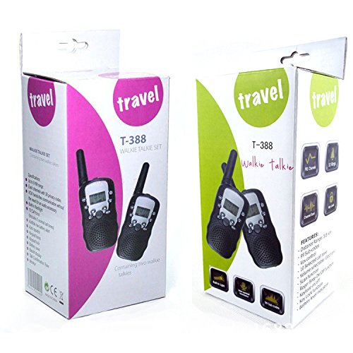 Description: Condition: Brand new & high quality. Model: T388 Color: Hot Pink, Black, Blue, Yellow Range of 5000m Eight channel RMR system autoscan function LCD display including,battery status indicator Adjustable volume level Transmitting and receiving icons Channel number and scan status Monitor function Electronic volume adjustment Auto squelch 5 different call melodies Call alert Built in flashlight Channel lock Power selection Power by: 4xAAA batteries(not include) Size: 14*5*2cm Package included: 1x Walkie Talkie
