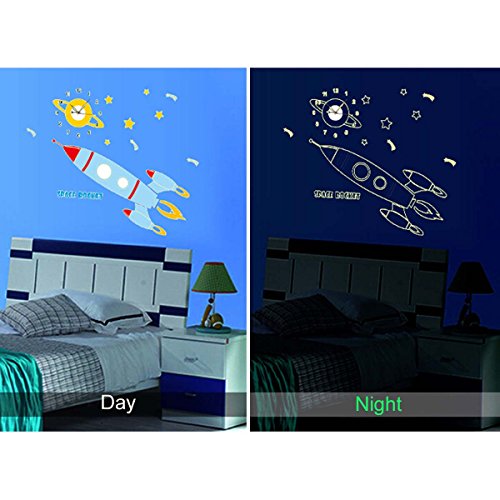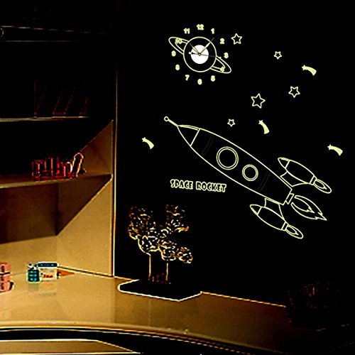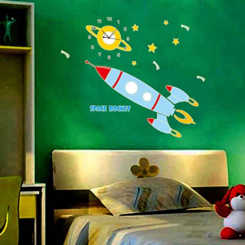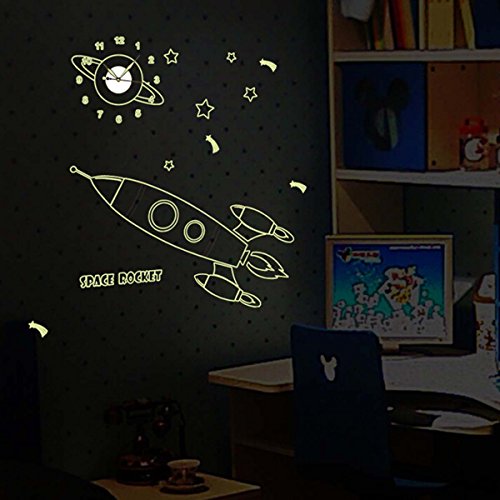 - Title : YESURPRISE Removable Vinyl Art PVC Cartoon Luminous Kids Bedroom Wall Clock 3D Modern Art Home Sticker ROCKET