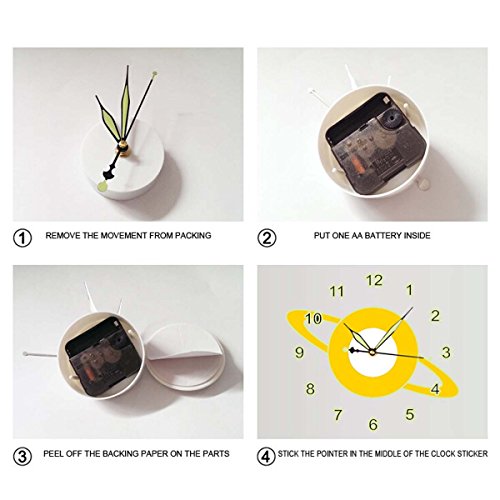 - Feature : 100% New and Hight quality / Material: PVC / The Sticker size: 30*90cm; The Effect Size: 90*70cm / Package: 1 x Wall Sticker and 1 x Wall clock (Battery: 1x AA battery,not include battery) / A stylish and sophisticated addition to any home