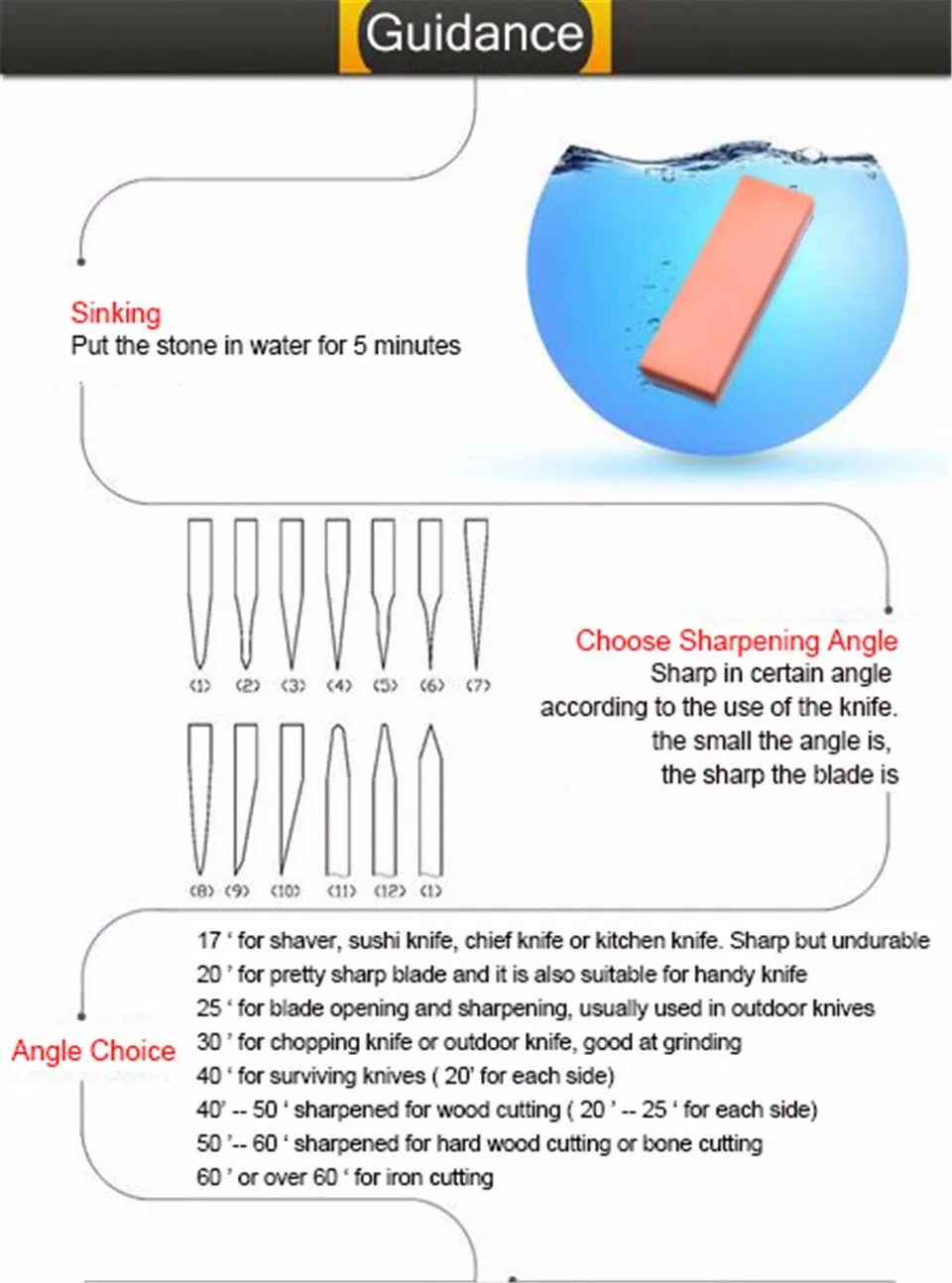 Feature:Double-sided whetstone,coarse grinding,used in Kitchen knives
