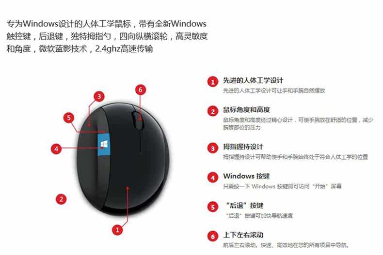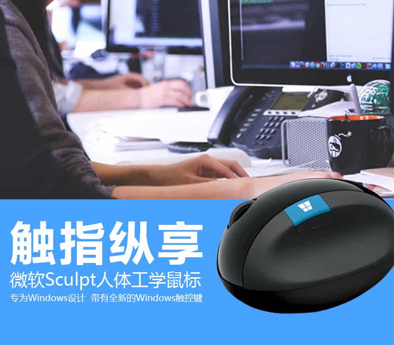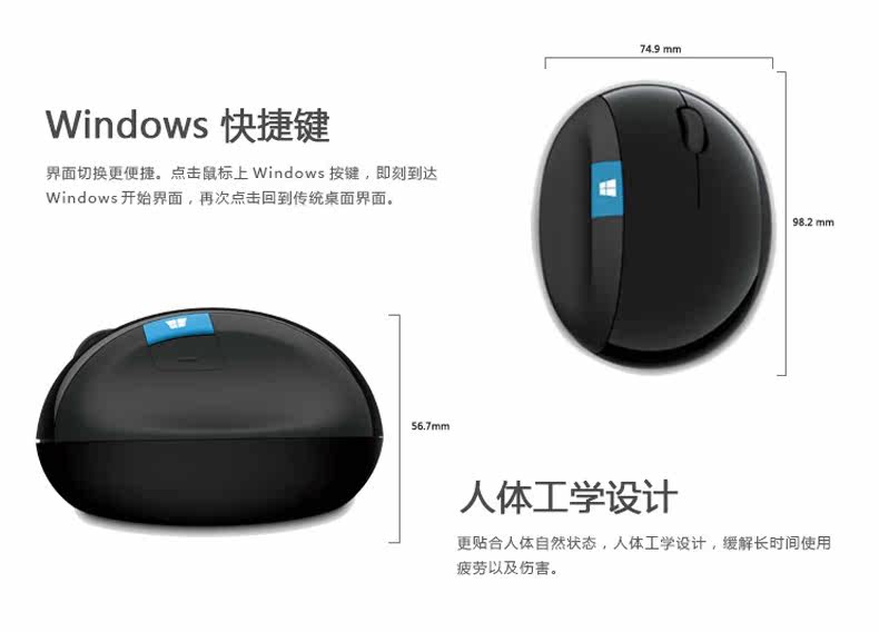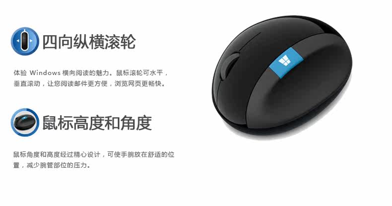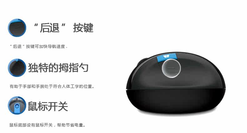 微软sculpt人体工学鼠标Ergonomic馒头设计蓝影无线鼠标舒适办公