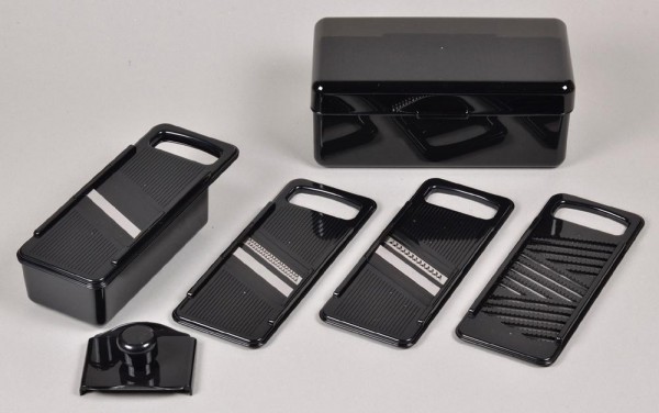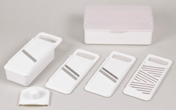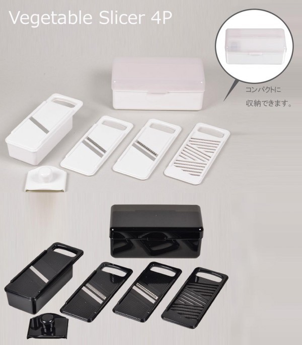 | コンパクトに収納できるスライサーセット。 |