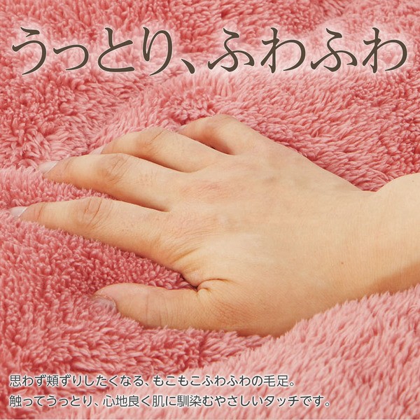 思わず頬ずりしたくなる、もこもこふわふわの毛足。お肌に馴染む様なやさしく心地良いタッチ。