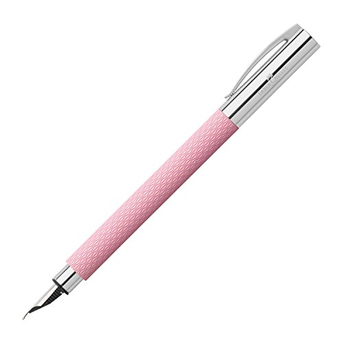 -. Feature : Pen features guilloche engraved resin barrel in delicate pink color / Refillable with a Faber Castell ink cartridge or converter / Polished chrome-plated nose and end-pieces / SP.R.Ing loaded clip holds the pen securely in place / Medium Fountain pen nib