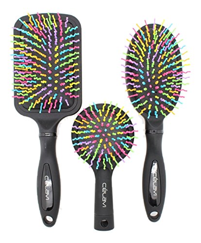 Celavi Rainbow Detangler Professional Salon Hair Brushes (Rectangle Head)