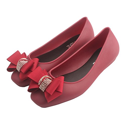 -. Title : Kontai Women Soft Rubber Jelly Flats Ballet Sandals Diamond Ribbon Bow Shoes