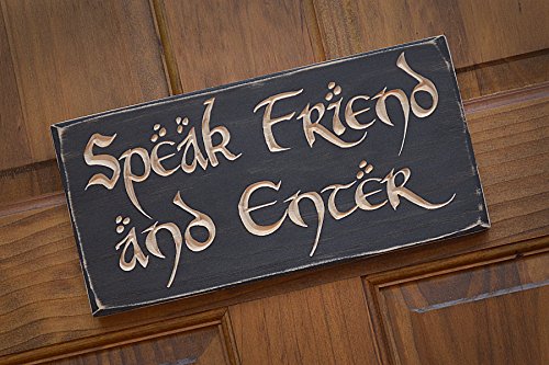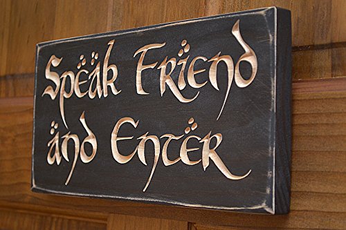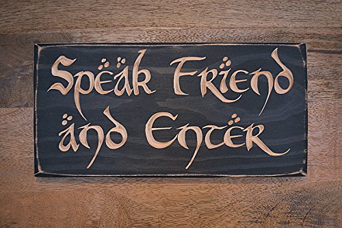 11" x 5.5" Speak Friend and Enter Sign/Plaque. Great gift for Lord of the Rings and Hobbit fans! Solid Wood Engraved