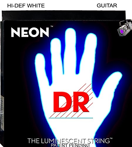 Studio : DR Music Publisher : DR Music Binding : Electronics Product Description DR NEON White Strings are super bright color-coated strings that sound clear, bright and musical and are an excellent idea for those wanting to add color to their rig. Super bright in daylight and under stage lighting, DR NEON White Strings are 100% black light active and glow strongly under UV lighting. These strings will last as long as a coated string should (three to four times as long as uncoated strings) while maintaining tone that is not only good, but better than top-quality uncoated strings. 0