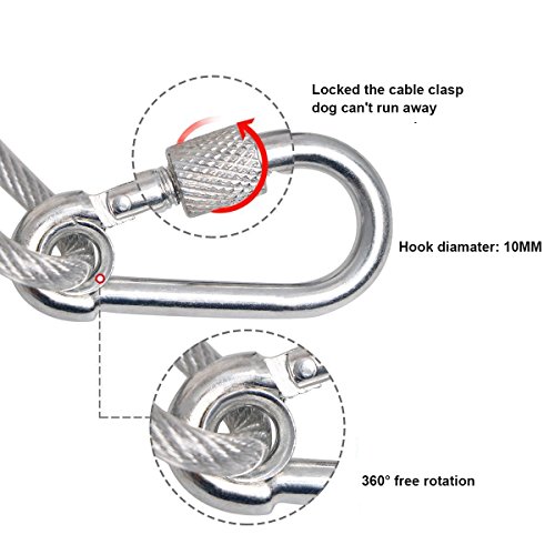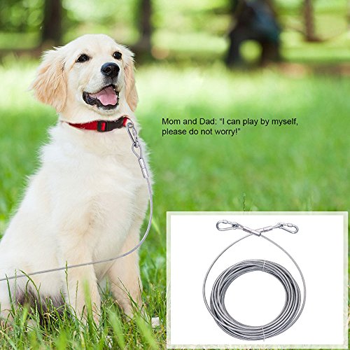 Dog Tie Out Trolley Cable 50 Features and Details? Extra strong Tie Out Runner Cable is strength tested for Dogs up to 200 pounds making it perfect for almost all Large breeds of Dogs. Light weight The strong, but light 50 foot dog trolley tie out cable is what makes this possible.? Durable material The heavy duty dog runner cable and swivel clips are constructed with 100% pure steel for greater strength and durability. Anti-rusty The dog run trolley system steel cable is vinyl covered to protect from rain and rust in the outdoors.? Size 50-feet dog tie out cable? Our goal is your 100% satisfaction. Get it, try it and if you don't like it, No Worries, we provide a full money back guarantee. 0 |
