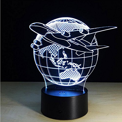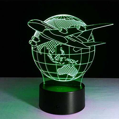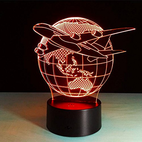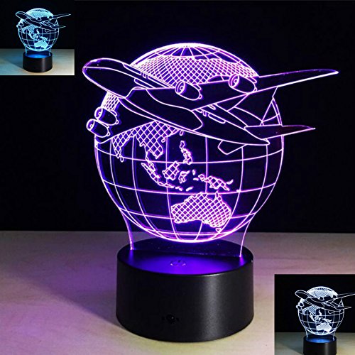 SUPERNIUDB 3D Aircraft Globe Earth Night Light 7 Color Change LED Table Lamp Xmas Toy Gift