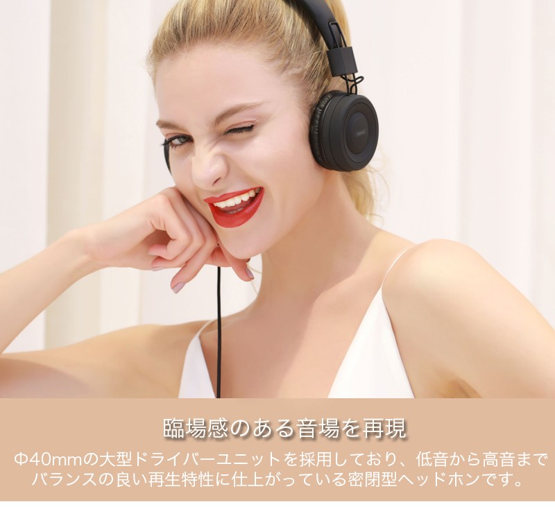 ★「カラー」ブラック(黒)★「商品特徴」Φ40mmの大型ドライバーユニットを採用しており、低音から高音までバランスの良い再生特性に仕上がっている密閉型ヘッドホンです。長時間のリスニングでも疲れにくい、柔らかなクッション素材をイヤーパッドに採用しています。リモコンにマルチファンクションボタンとマイクを内蔵。スマートフォンでハンズフリー通話が可能です。ヘッドバンドはサイズ調整ができるアジャスター式で、安定した装着感を実現します。★「キーワード」ヘッドホン 密閉型 リモコン付き マイク付き 有線式 スマホ対応 オーバーヘッドホン 大型ドライバー 40mm クッション 柔らか イヤーパッド 高音質 幅広い音域 臨場感 迫力 片出しコード アジャスター式