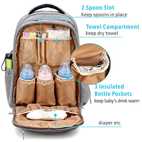 (F-color)/Accessories/Luggage, Bags Travel/DIRECT FROM USA/F-color Baby Daiper Bag Backpack for Mom Dad with Stroller Straps, Changing Pad Insulated Pockets