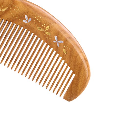 Breezelike No Static Sandalwood Pocket Fine Tooth Comb with Golden and Silver Butterfly Painting
