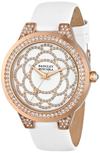-. Title : Badgley Mischka Women's BA/1330WTRG Swarovski Crystal Accented Rose Gold-Tone and White Leather Strap Watch