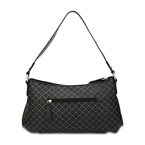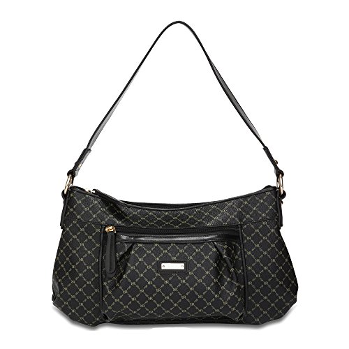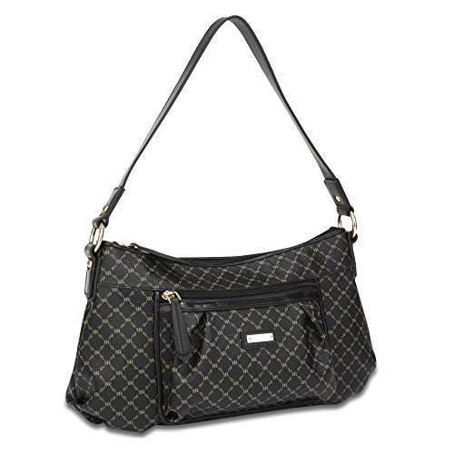 -. Brand : Rioni -. ClothingSize : Medium -. Color : Black -. Department : womens -. EAN : 0669478006763 -. Feature : Front and rear zippered pocket for easy access to your essentials / Black fabric RIONI monogram print lining. / Top zip closure opens to zippered center divider pouch / Interior features a side pocket, a cell phone pouch, and a zippered pocket on the side / Dimensions: 14.5" L x 5" W x 8" H - 10" Strap Drop Length -. Label : Rioni -. Manufacturer : Rioni -. MPN : STB-20259 -. NumberOfItems : 1 -. PackageQuantity : 1 -. PartNumber : STB-20259 -. ProductGroup : Apparel -. ProductTypeName : APPAREL -. Publisher : Rioni -. Size : Medium -. Studio : Rioni -. Title : Signature Rue Bag Color: Black -. UPC : 669478006763