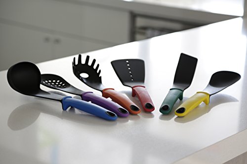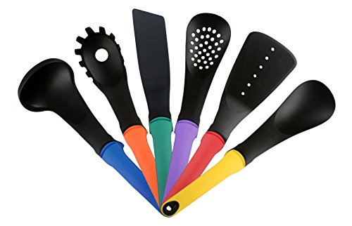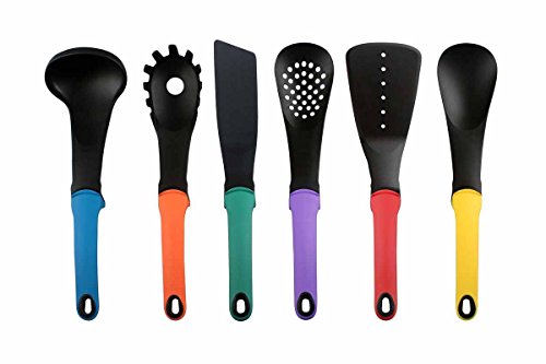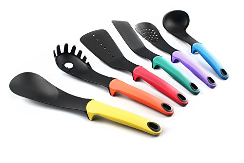 Kitchen Utensils Set 6 piece Colorful Cooking Tools Nonstick Nylon Natural Fun Chef Food Serving Tool Dishwasher Safe Includes Spatula, Spoon Solid & Slotted, Ladle, Pasta Scoop, Cake Server Pure Life