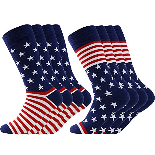 -. Binding : Apparel -. Brand : LANDUNCIAGA -. Department : mens -. Feature : One Size Fits Most:Our men patriotic american flag socks are good blend of Cotton and Polyester. Our fashion novelty happy dress american flag patriotic wedding groom groomsmen crew socks are easy to put on and comfortable to wear all day. And they have a stretch fit for optional comfort. Men casual dress socks size 10-13, shoe size 6-12. / Eye-catching Funky Pattern & Colors: Our colorful happy pattern business dress socks will keep your feet feeling soft and looking great. Classy American flag pattern socks,colorful striped socks,funky star pentagram cartoon design socks, add a splash of fun and fashion under your serious outfits and insipid work. / Ideal For:Fashion casual American flag patriotic socks are the best socks for office,hiking,school or outdoor in every seasons.Comfortable and breathable,prevent bacteria and keep healthy.Colorful choices in dress socks and groomsmen wedding socks,lighten up your life and make them perfect gift to surP.R.Ise your family and friends!The coloful dress socks are also great for party,game,concert.Best gifts for Halloween,Thanksgiving Day,Christmas,New Year,Birthday,Anniversary,Father's Day,holidays. / Maximuim Durability:The happy socks for men are expertly fabricated with the perfect formulation, made with 90% cotton and 10% polyester to provide a more stable and stretchy finish than basic weaves, breathable, absorbent, and deodorizing and to keep elasticity and softness in the mens socks for long term use. / GUARANTEE:We think you're going to love this wedding socks and cotton dress socks as much as we do. But in case you don't, just return it within 30 days for a full refund. We sincerely hope that you will be completely satisfied with our Americam flag dress wedding groom groomsmen socks and service. -. IsAdultProduct : 0 -. ProductGroup : Apparel -. ProductTypeName : SOCKSHOSIERY -. Title : Patriotic Socks, LANDUNCIAGA American Flag Novelty Crew Wedding Dress Socks,3/4/6/8 Pairs
