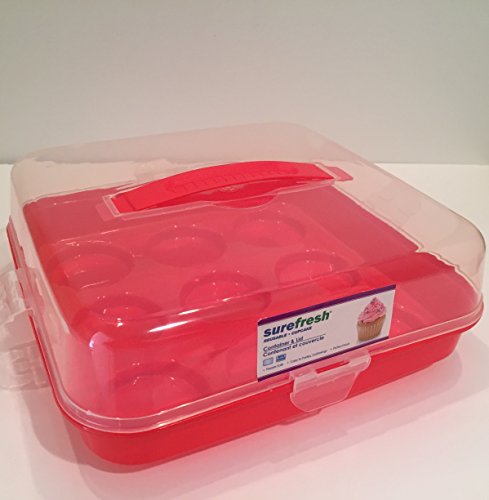 Cupcake Portable Square Carrier / Storage Container With Handle By Sure Fresh