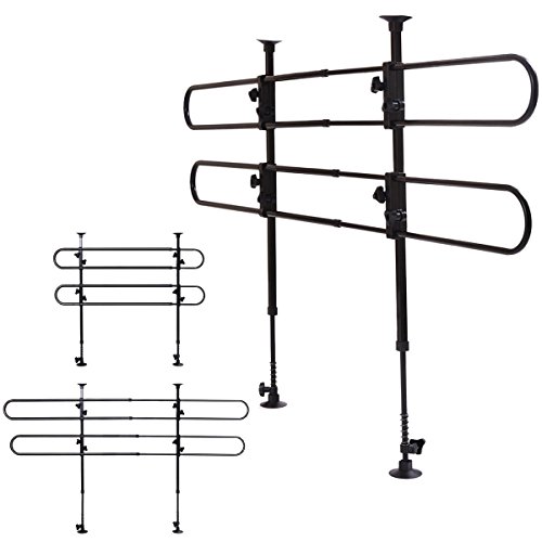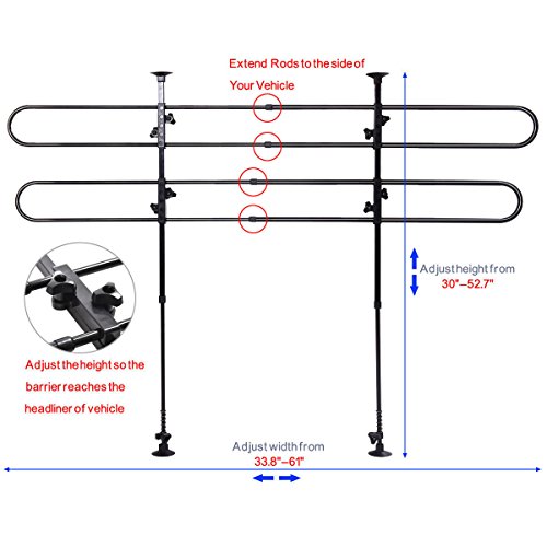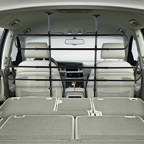 -. Binding : Misc. -. Brand : JAXPETY -. Color : BLACK -. Feature : Easy installation;Block Front seats;Adjustable bar - One size fits most / Makes driving with pets safer by confining pets to the cargo area, thus minimizing driver distractions / Twist lock adjusters and 4 bar design keeps pets safely contained / Rattle free design and easy twist lock adjusters makes transportation hassle free / No tools required for quick and easy installation -. Label : JAXPETY -. Manufacturer : JAXPETY -. PackageQuantity : 1 -. ProductGroup : Pet Products -. ProductTypeName : PET_SUPPLIES -. Publisher : JAXPETY -. Studio : JAXPETY -. Title : JAXPETY Universal Dog Pet Barrier Fit Adjustable Doggie Blockers Safety Gate Fence Suv Car Wagon Auto Stop Access