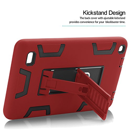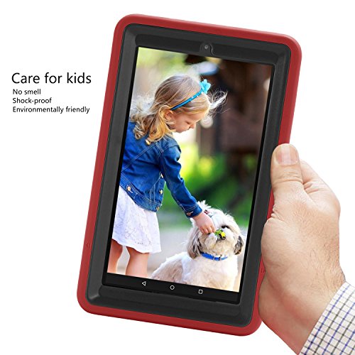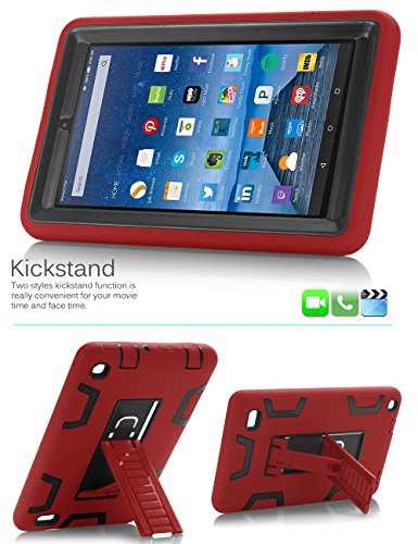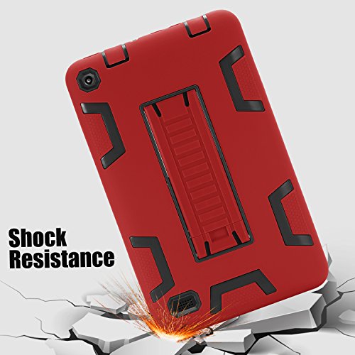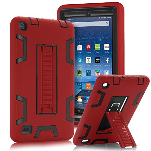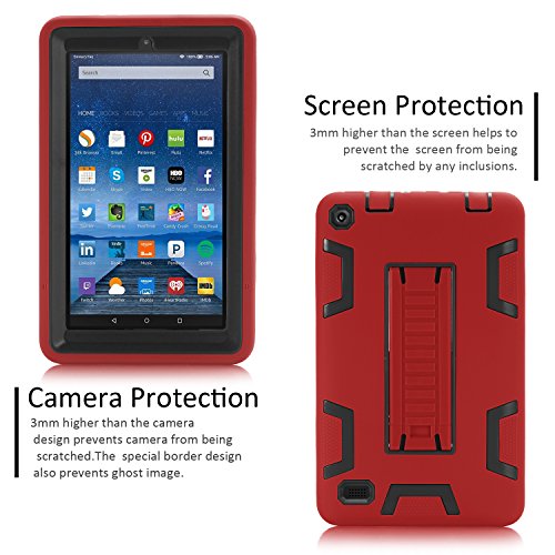 TIANLI Amazon Kindle Fire 7 2015 Case, ArmorBox [Three Layer] Convertible [Heavy Duty] Rugged Hybrid Protective With KickStand Case For Amazon Fire 7" Tablet (5th Gen) , Red-Black